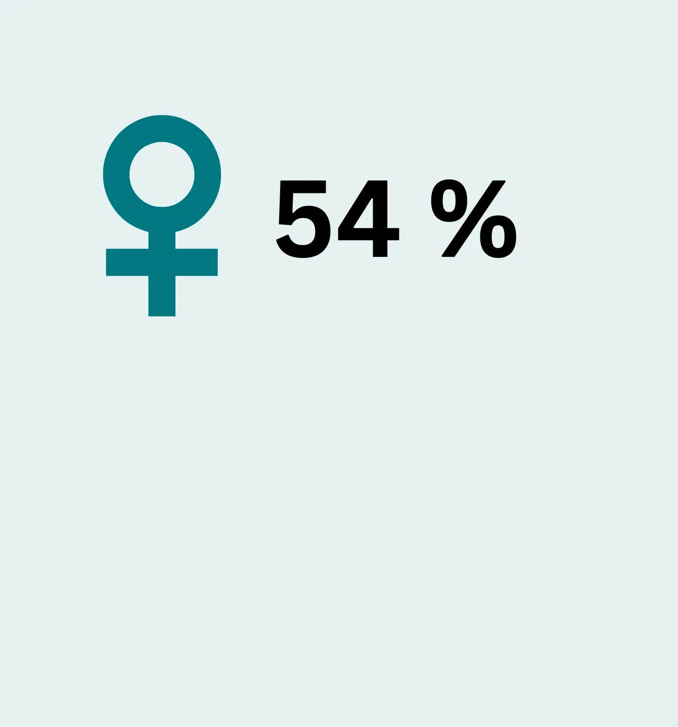 In Deutschland sind 54% unserer Mitarbeitenden Frauen. Der Anteil unter unseren Führungskräfte liegt bei 44%.